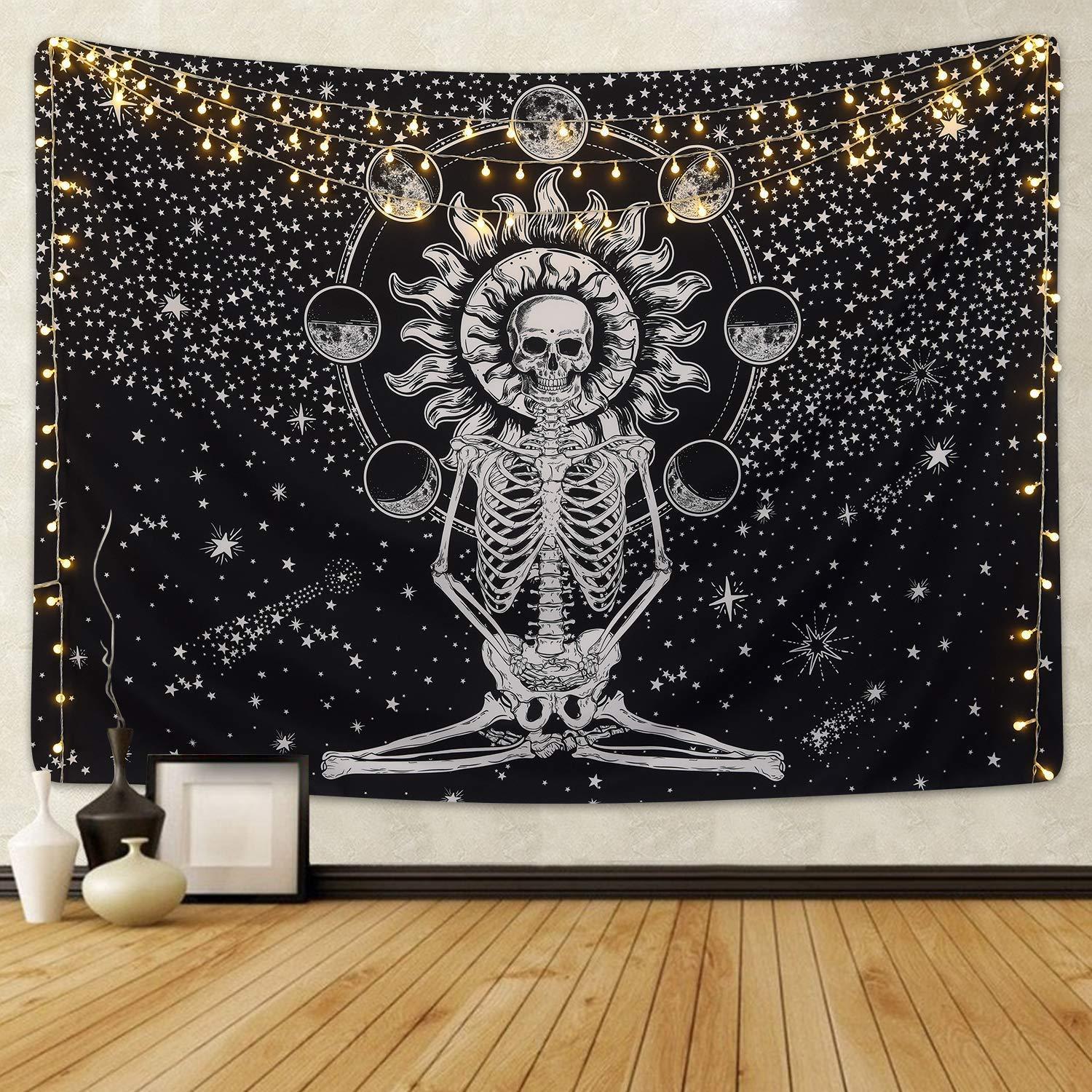 Skull Yoga Wall Hanging Handmade Cotton Tapestry 84″ x 54″ inch