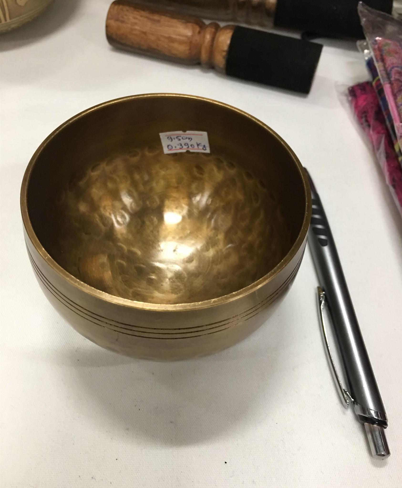 10 cm / 4″ Hand pounded hammered Plain Golden Color Singing Bowl for Meditation, Relaxation & Healing with Wooden Mallet