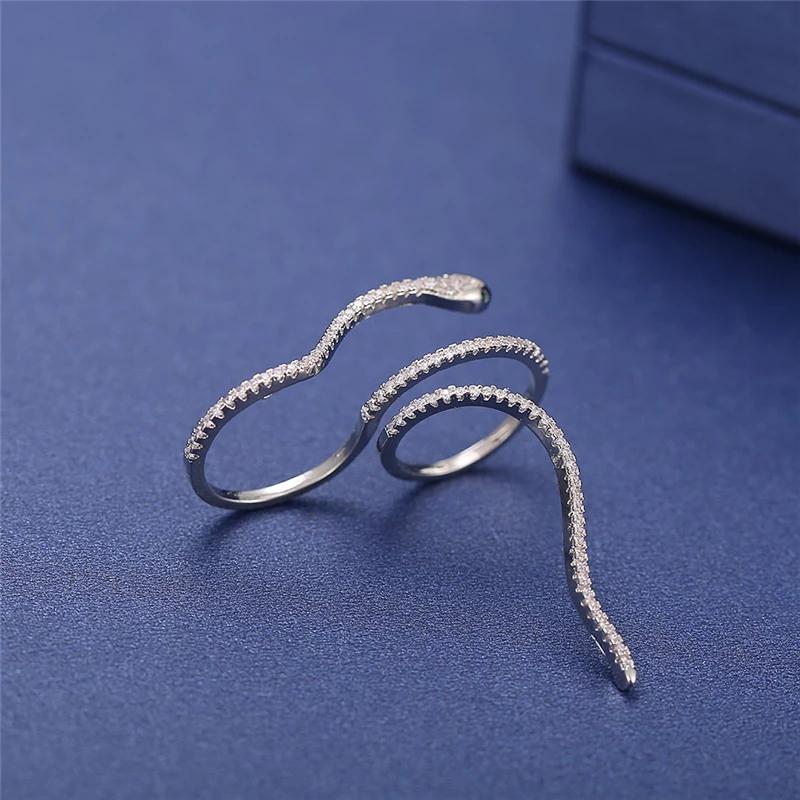 Snake Shape Ring Silver Color Adjustable Crystal Cubic Zirconia