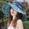 Print Bowknot Trendy Straw Beach Hats Women  Folding Wide Visor Sun Shade;  Adult One Size Fits Most (22-23 inches), adjustable size