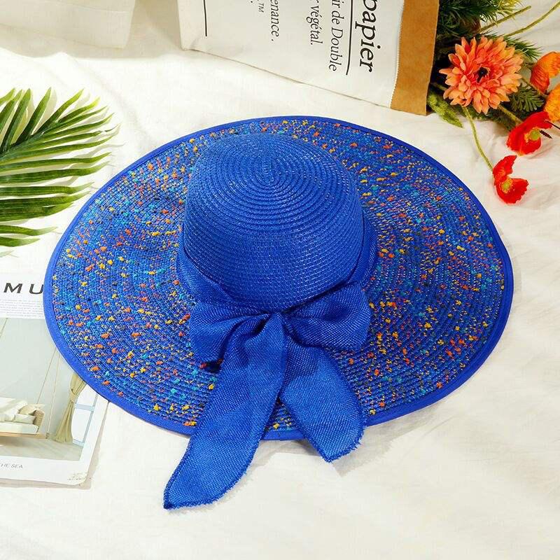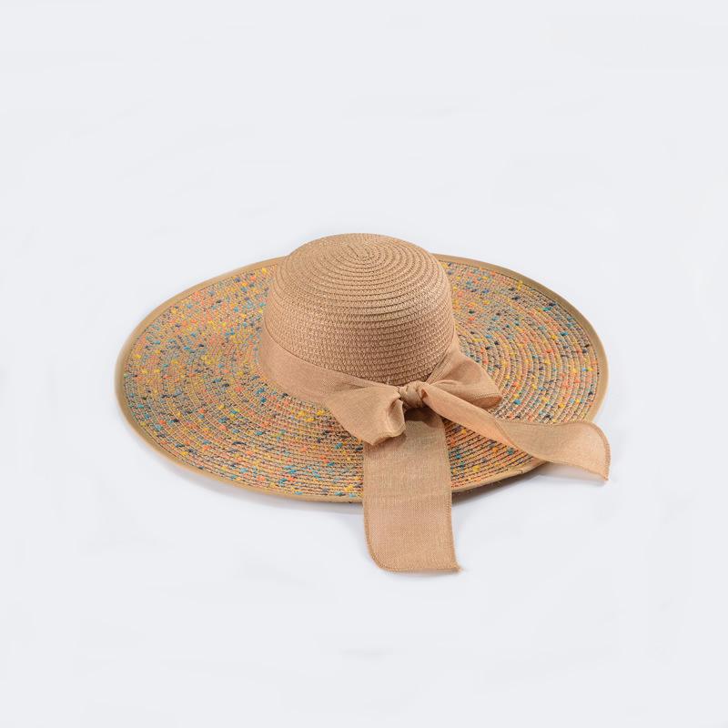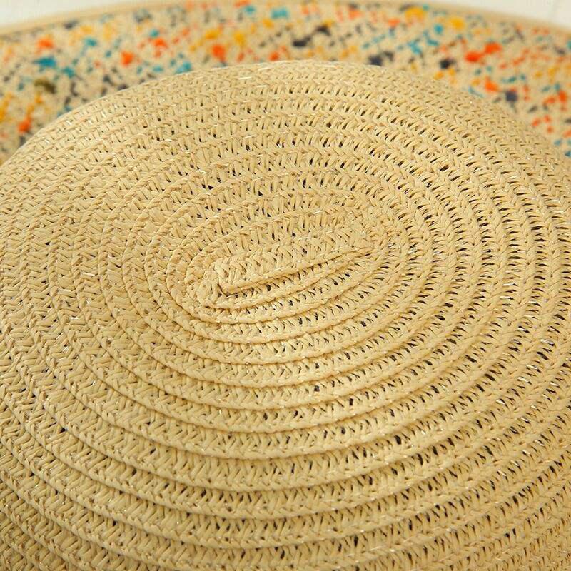 Summer Straw Hat with Colorful Brim and Linen Ribbon Panama Sunshade Woven Trendy Beach Hat; Adult One Size Fits Most (22-23 inches), adjustable size