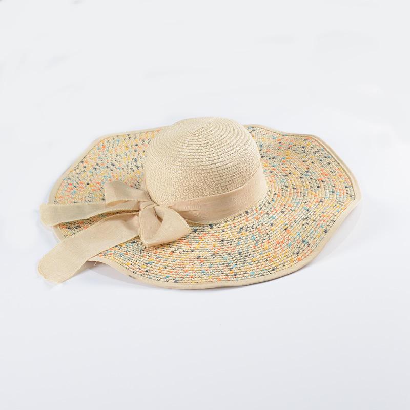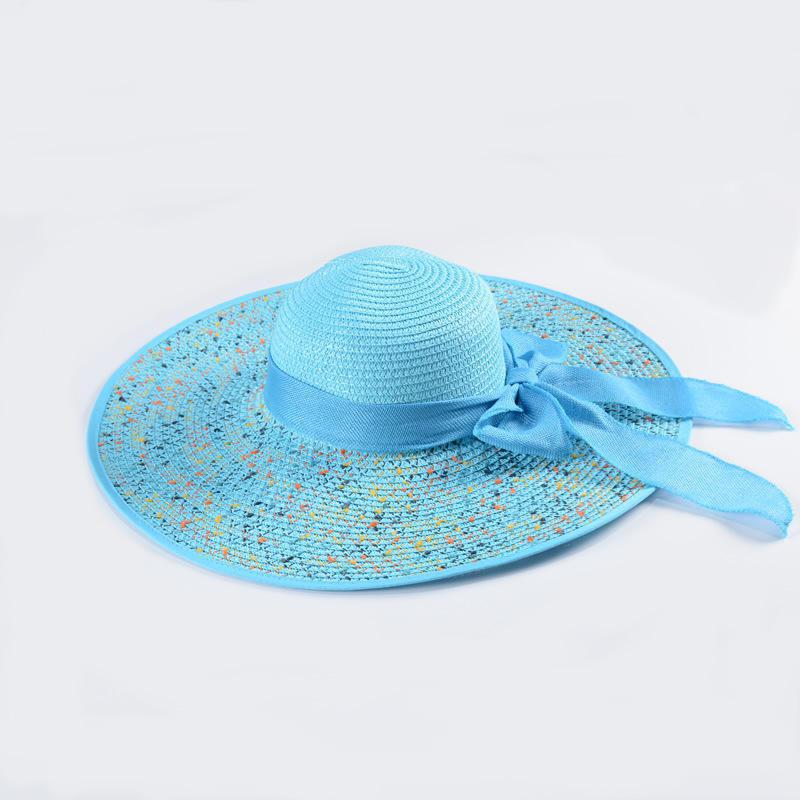 Summer Straw Hat with Colorful Brim and Linen Ribbon Panama Sunshade Woven Trendy Beach Hat;  Adult One Size Fits Most (22-23 inches), adjustable size