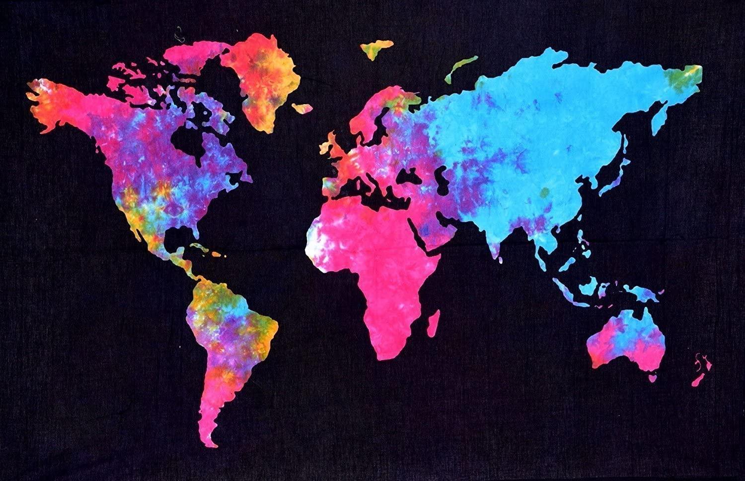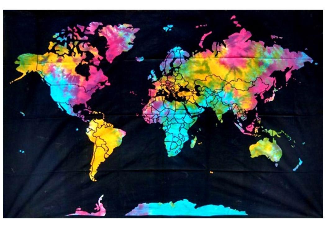 World Map Tie dye Tapestry 84″ x 54″